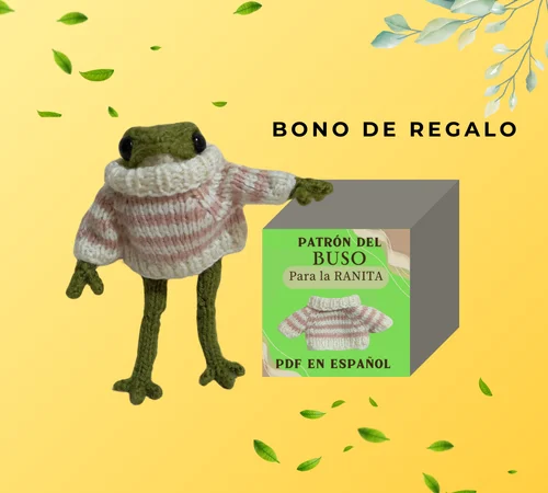 Al adquirir este patrón de la ranita, te llevas totalmente GRATIS el patrón del busito especialmente diseñado para que la ranita luzca aún más adorable. Este bonus también está tejido a agujones, ¡perfecto para complementar tu proyecto!